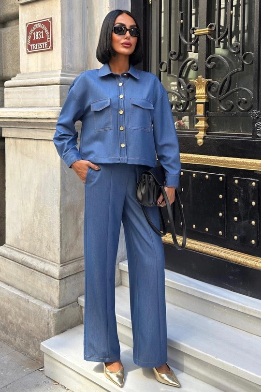 #two piece set women#matching set outfit#blue co ord set#women’s pants suit#Chic wide leg pants set#minimalist two piece outfit#elegant co ord set#Tailored Pants And Shirt Set#Casual chic women outfit#Wide Leg Pants Set#modern power suit women#lounge set for women chic#Trendy Loungewear Fashion#Denim