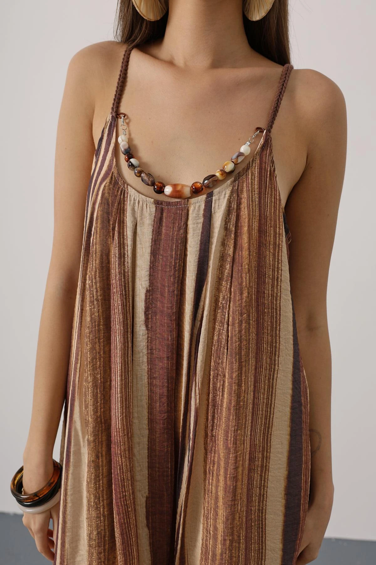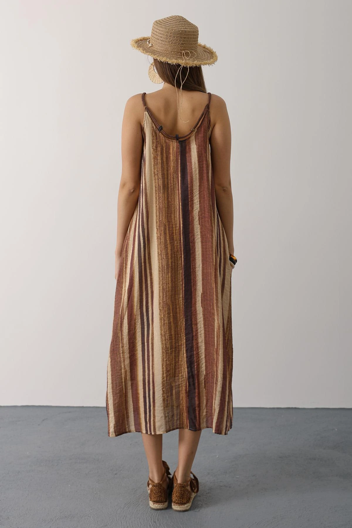 Bohemian Maxi Dress Spaghetti Strap Earth Tones Striped Beaded Neckline Summer Boho Dress Festival Dress Boho Striped Maxi Dress Spaghetti Strap Summer Dress Bohemian Beach Sundress Custom Size Hippie Dress Women Casual Long Dress ✨ Leave a 5-star review and get 10% off your next order! ✨ Embrace y...