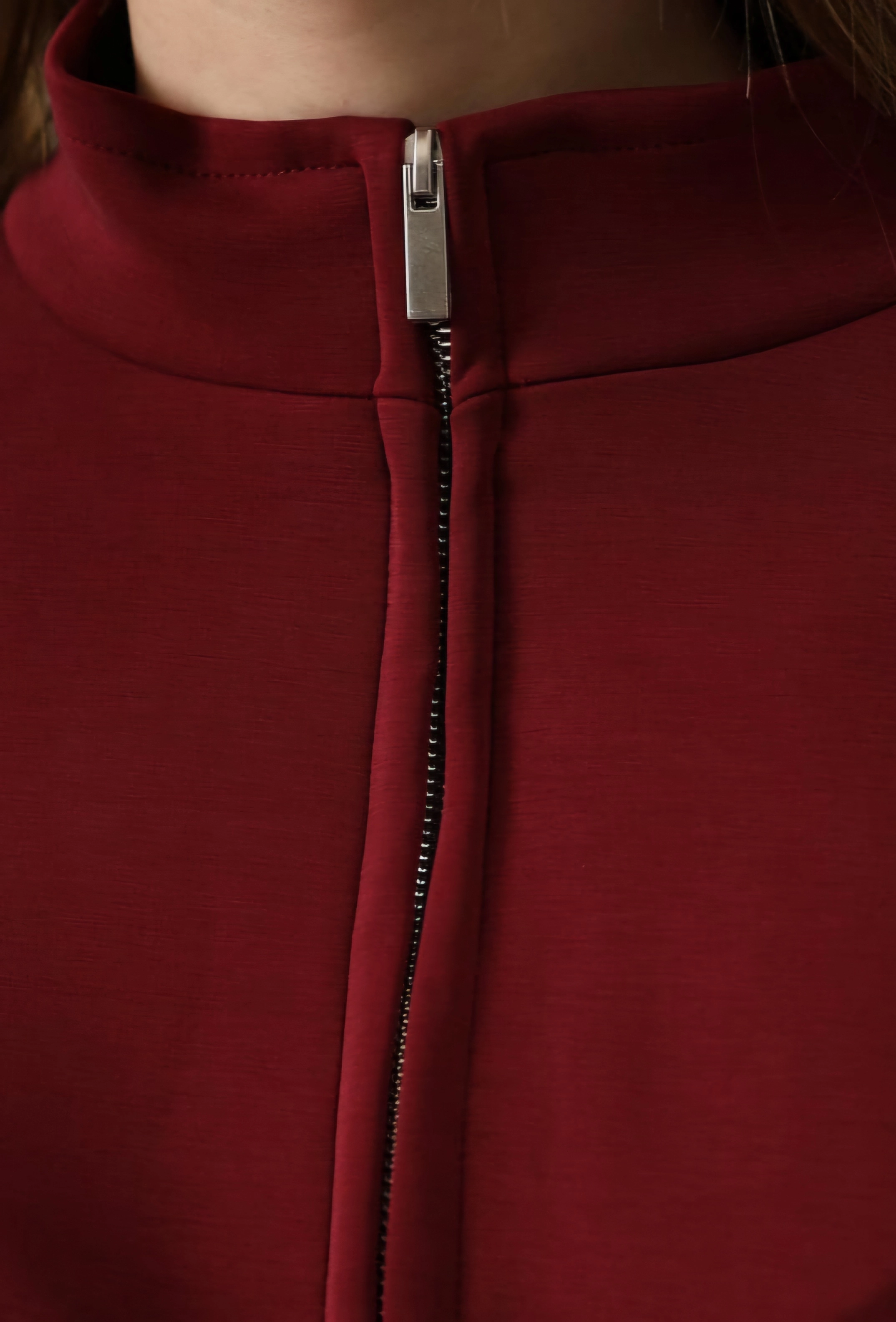 Burgundy Belted Peplum Jacket | High Neck Long Sleeve Zip-Up Sweatshirt