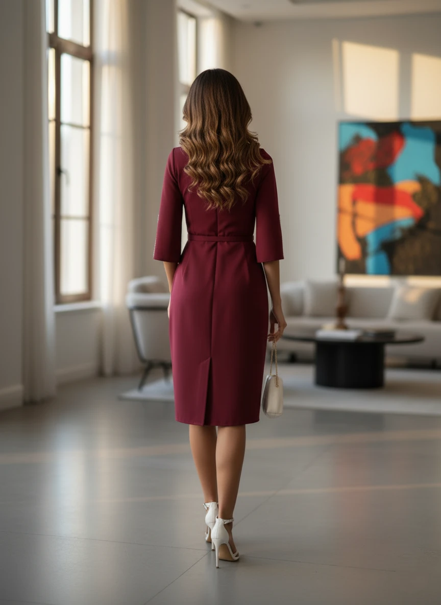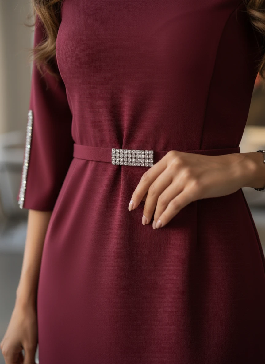 Radiate Confidence: The Burgundy Split-Sleeve Rhinestone Gown Elevate your evening wardrobe with a gown that perfectly balances timeless sophistication with modern glamour. Whether you are the Mother of the Bride, a distinguished wedding guest, or attending a holiday gala, this dress is designed to...