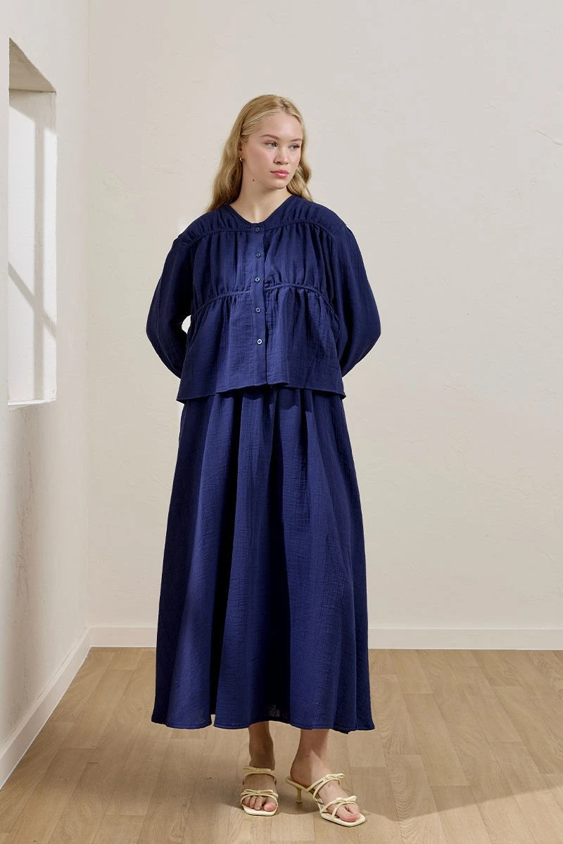 Vintage-Inspired Muslin Set - Smocked Blouse & Tiered Balloon Maxi Skirt