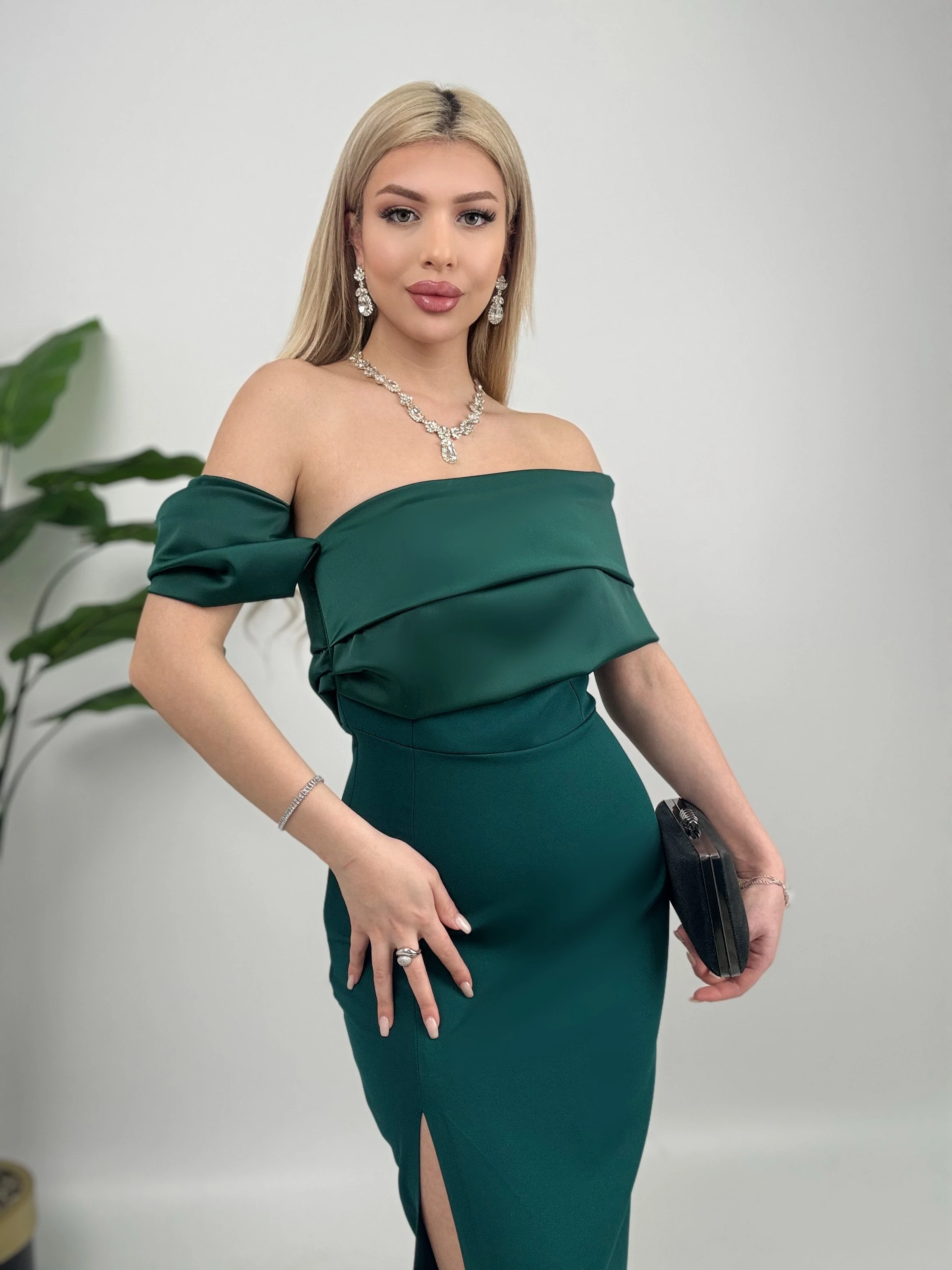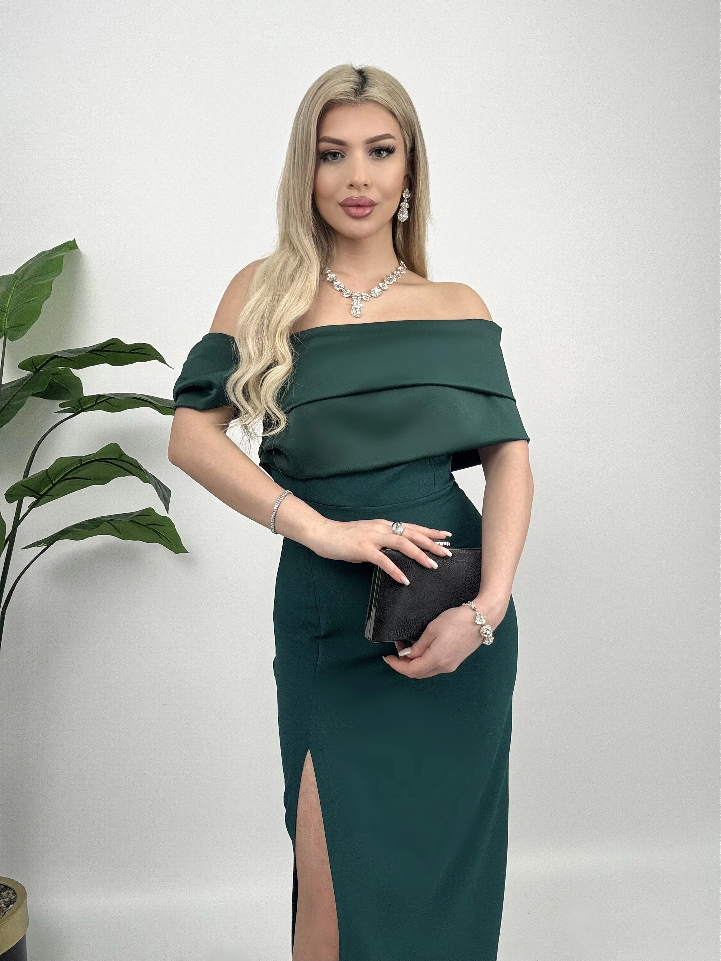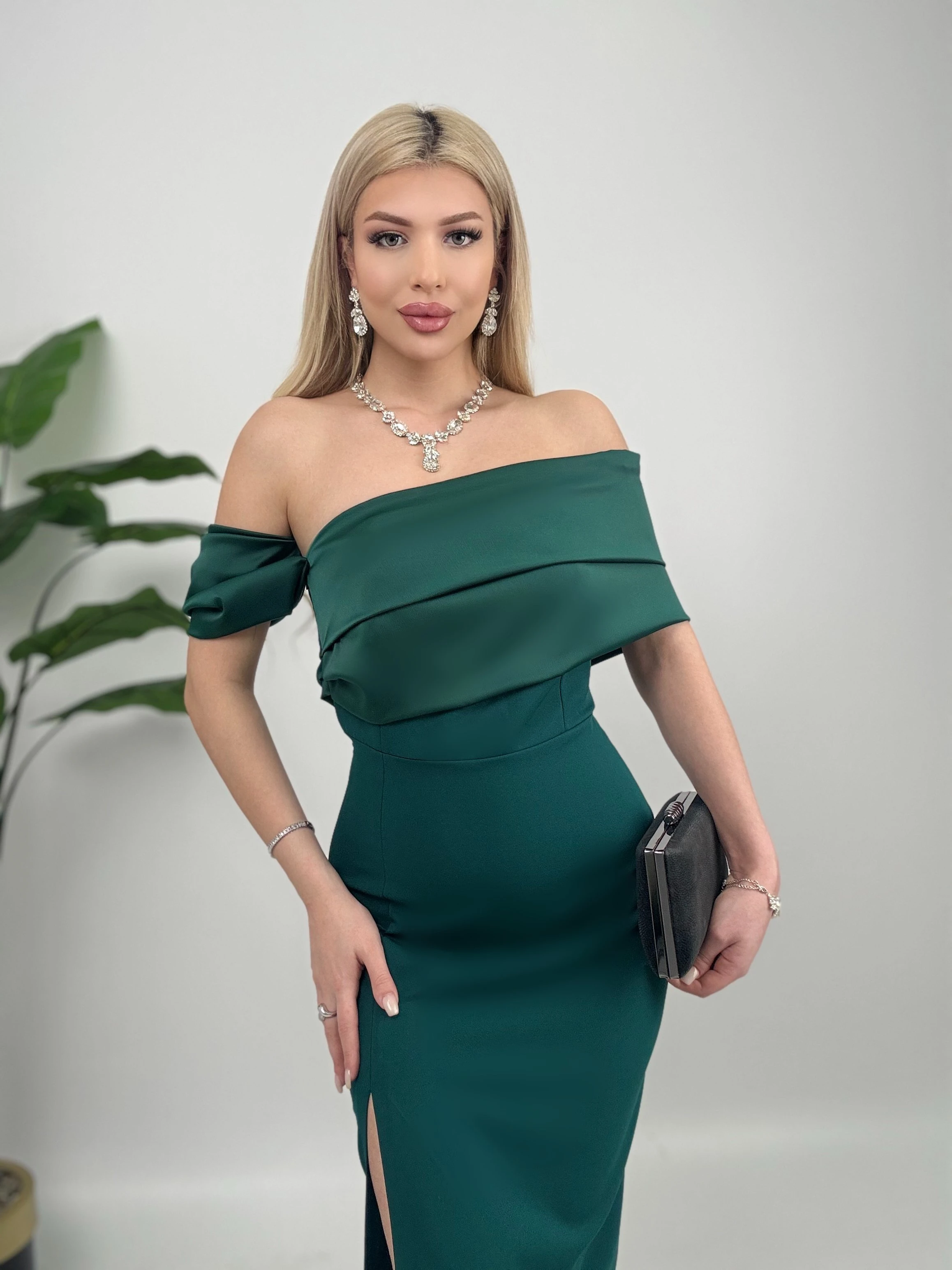Emerald Green Off Shoulder Formal Dress Women Long Evening Gown Wedding Guest Maxi Dress with Slit