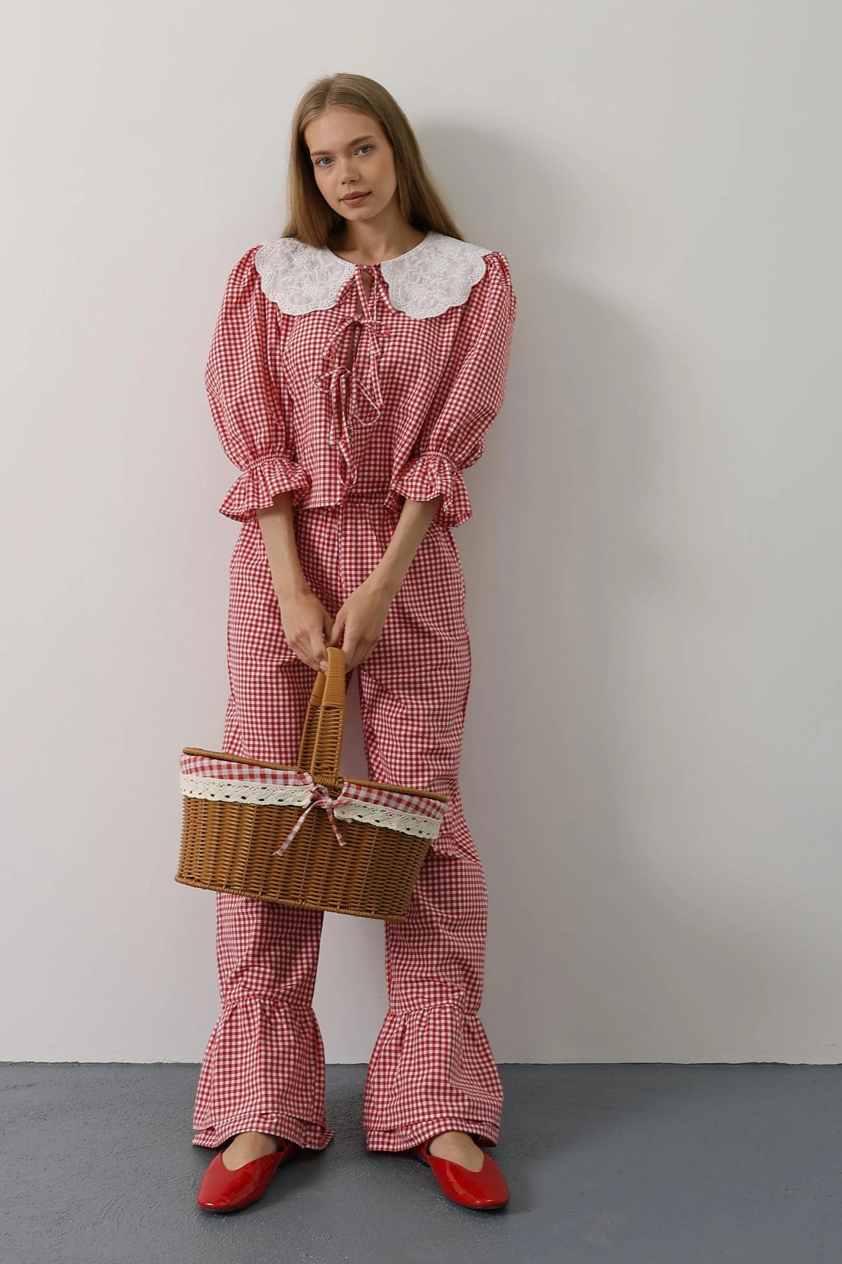 Women's Red Gingham Co-ord Set Lace Collar Crop Top High Waist Flare Pants Vintage Retro Two Piece Matching Set Custom Made ⭐ Leave a 5-star review and get 10% off your next order! 🎉✨ Step into vintage charm with this adorable red gingham co-ord set! 💕 This retro-inspired two-piece features a ch...