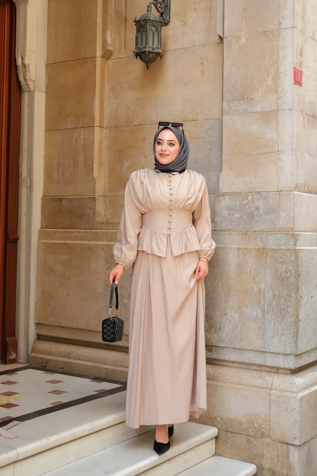 Modest Two Piece Set Beige Modest Dress Hijab Abaya Maxi Dress Islamic Clothing Cream Maxi Skirt