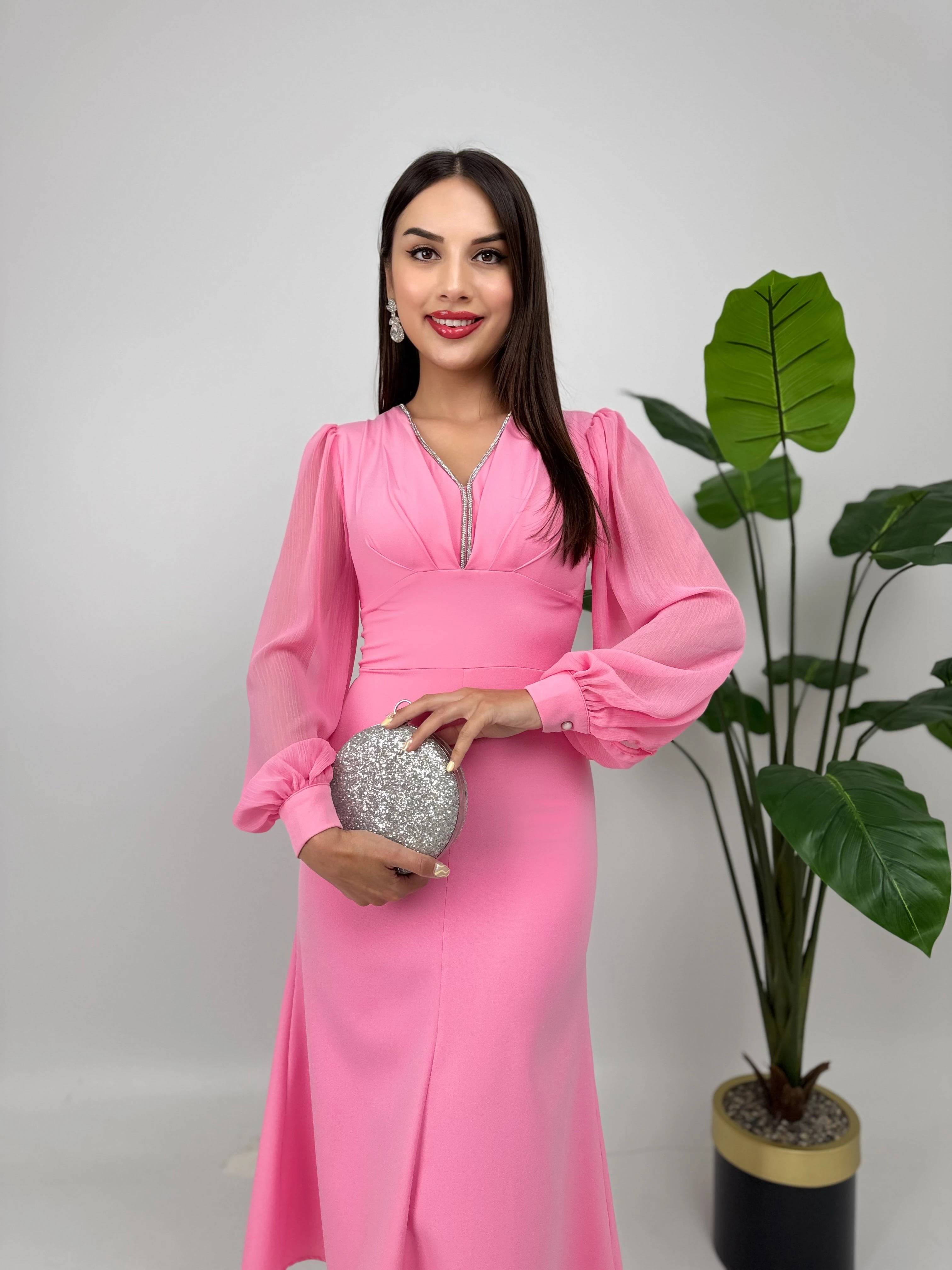 Pink Midi Dress Long Sleeve Formal Wedding Guest Dress Elegant Balloon Sleeve Cocktail Dress Prom Dress Party Outfit ✨ Step into elegance with this stunning pink midi dress! Perfect for weddings, cocktail parties, proms, and any special occasion where you want to make a memorable impression. The so...