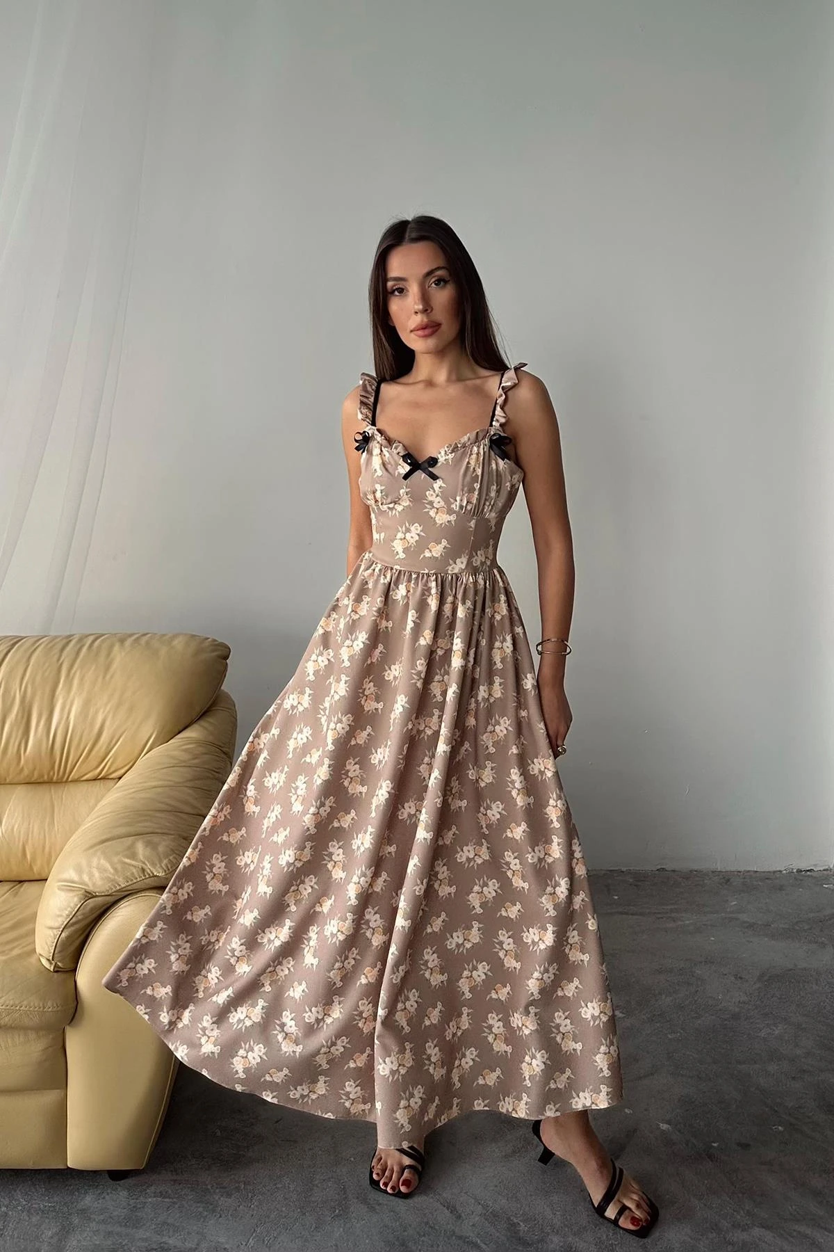 Romantic Ruffle Strap Floral Midi Dress in Mocha Bloom – Cottagecore Summer Sundress Step into timeless elegance with our Romantic Ruffle Strap Floral Midi Dress in Mocha Bloom 🌸. This enchanting piece captures the essence of cottagecore charm, making it perfect for garden parties, brunches, or an...