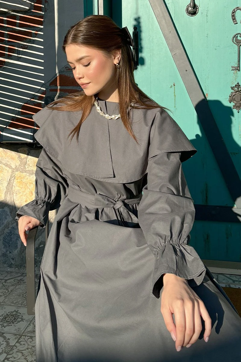 Victorian Charcoal Maxi Dress with Belt Elegant Modest High Neck Ruffle Detail Formal Long Sleeve Prairie Style Gown for Women 💬 Leave a 5-Star review and get a 10% DISCOUNT on your next order! 🎁 Step into timeless elegance with this Victorian-inspired charcoal belted maxi dress. Designed for th...