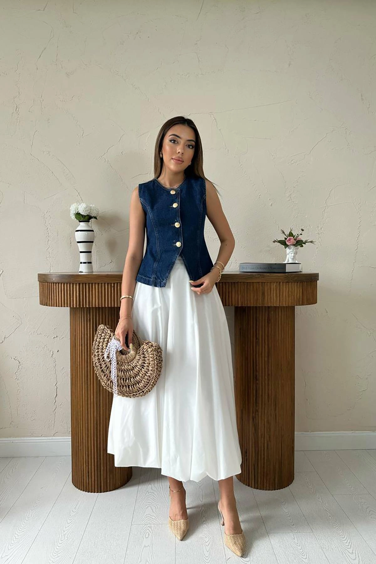 Womens Blue Denim Vest Sleeveless Button Front Jean Jacket Fitted Waistcoat Casual Boho Western Style Summer Top Transform your wardrobe with this stunning sleeveless denim vest! 💙✨ Perfect for layering or wearing alone, this fitted waistcoat features beautiful button-front details with gold-tone...